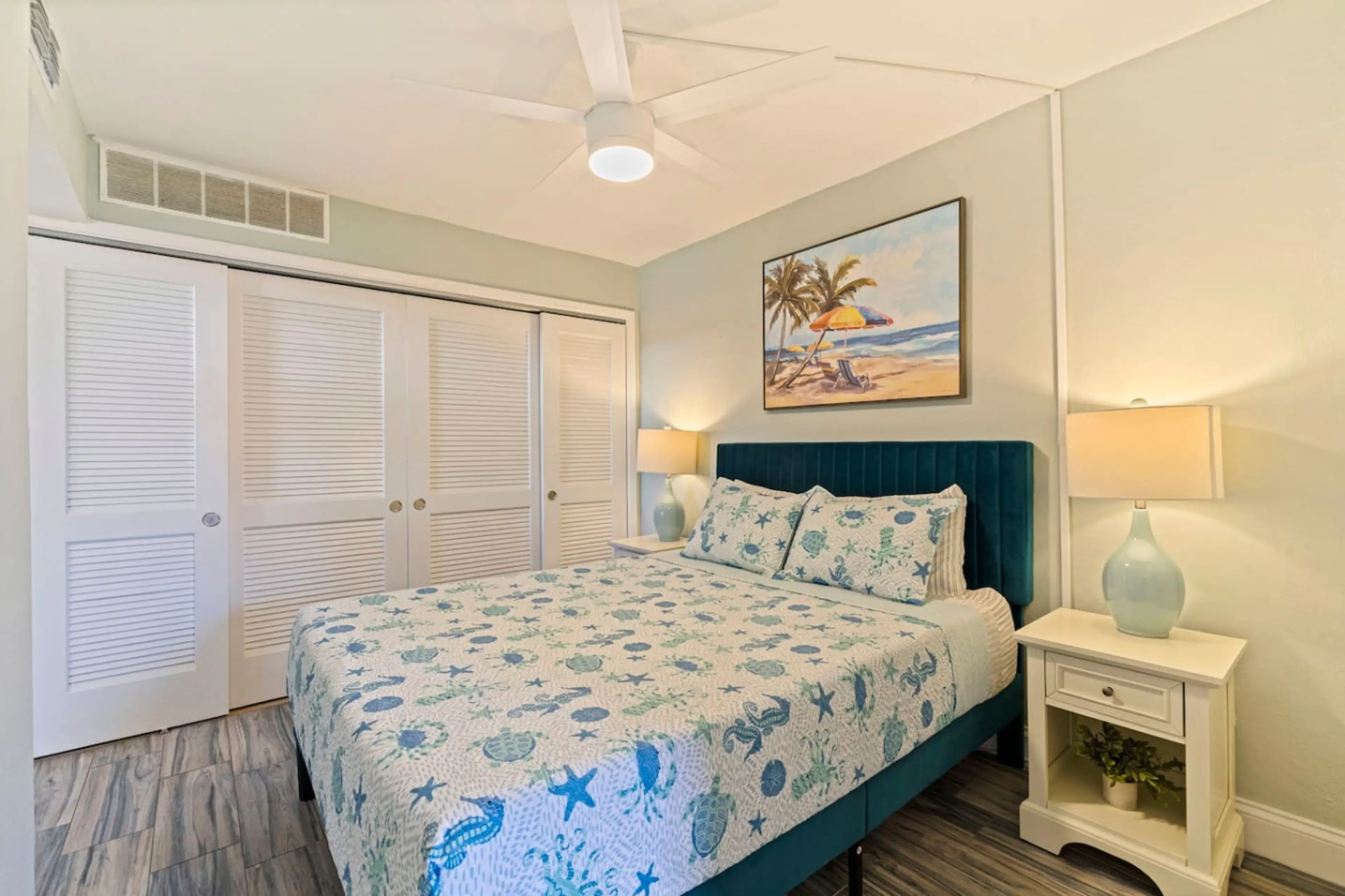 Freshly remodeled 1 Bedroom beach condo, new interior! Best location, steps to the sand at Upham Beach. Complex amenities include year-round heated pool & your own private patio. Cleverly designed with the bedroom behind sliding doors and an open concept living area, full size sofa bed and modern eq...