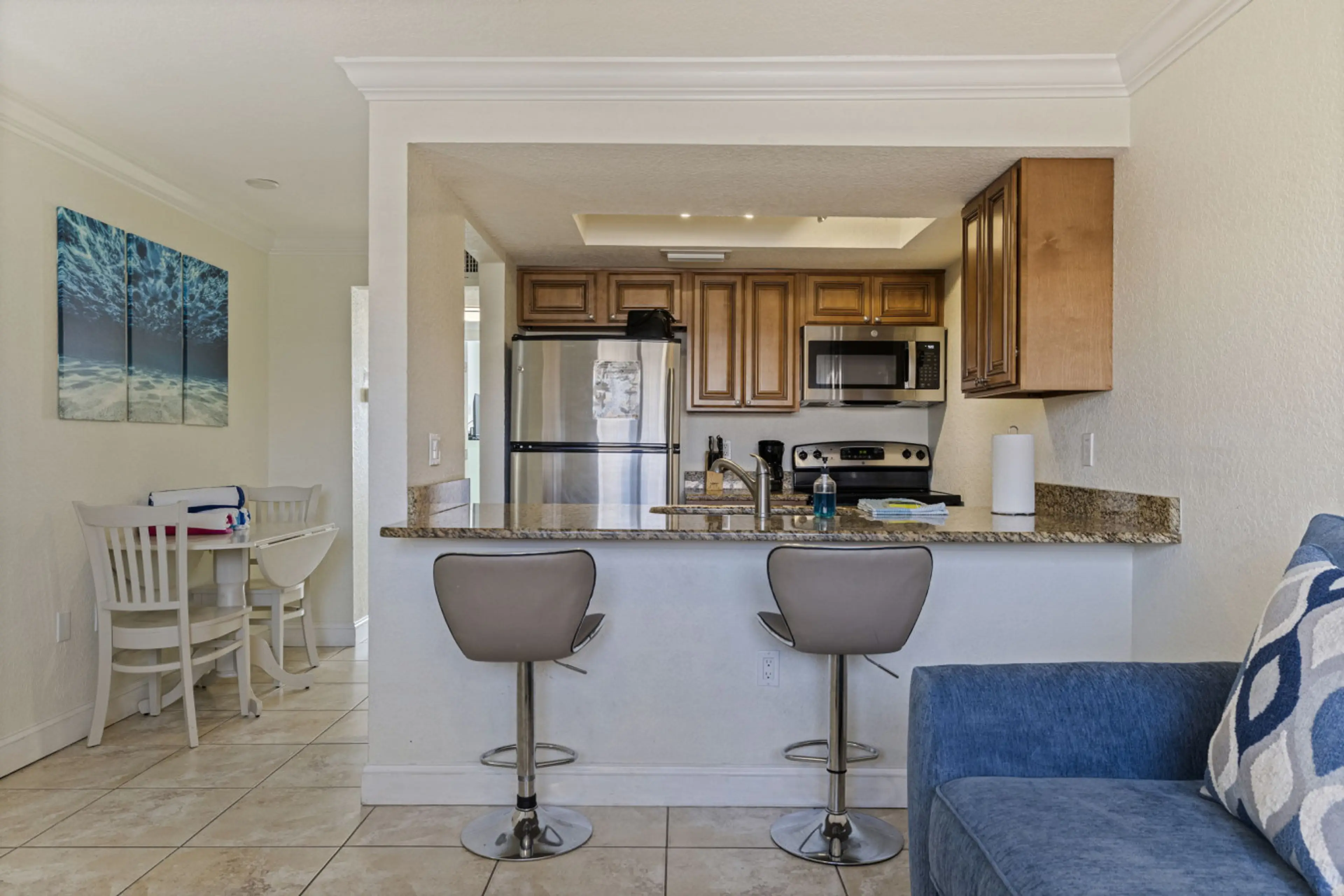 My wife and I had a great experience during our stay here. It was very clean. It is right across the street from the public beach and there are plenty of restaurants/ bars within a short walking distance, as well as the local Publix to get groceries. The cleaning staff was friendly and the communication with the owner was great, check-in was simply getting a code from them through email and punching it into the door lock. We would not hesitate to stay here again.